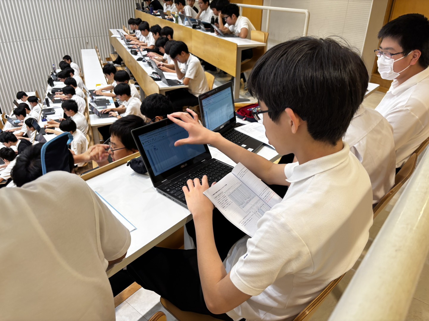 また、探究授業として「理数探究」を履修していますが、「情報Ⅰ」の内容自体探究の要素が強いので、「情報Ⅰ」とあわせて計4単位分を情報の授業として扱い、中3~高2の週1時間の授業と高校1年生の集中授業に割り当てて実施しています。