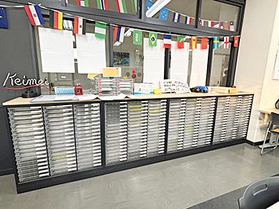 時間割も特徴的で、通常の時間割(クラス単位)を一度組んだ後に、取り出し授業クラス用の時間割を新たに組みます。その後、生徒一人ひとりの学習状況に合わせた「個別の時間割」を作成しています。同じ国際生であっても個々の学習歴や日本語力は異なるため、個別にどの教科を国際プログレスクラスで学ぶかを決めます。そのため、同じ学年・同じクラスであっても、一人ひとりの動きはばらばらになっています。