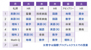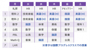 - 中学1年生の時間割例